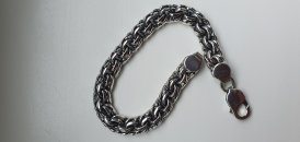 Full-fledged bracelet.This page presents a massive silver men's bracelet made of Bismarck weave with a “Box” clasp. This bracelet is made of 925 sterling silver with blackening.