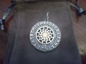 The photo shows silver pendant - amulet "Black sun in a futark" with blackening. You can buy a Slavic amulet made of silver in almost any size for any size of chains.