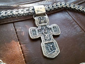Чоловічий набір: срібний ланцюг з хрестом авторського плетіння